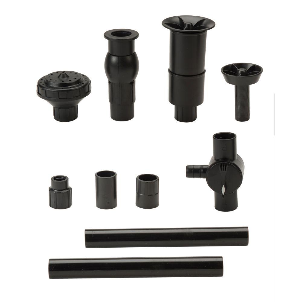 Add beauty and aeration to you water feature by adding the pond nozzle kit to your pond pump.